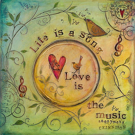 Love is Spoken Here White Modern Wood Framed Art Print with Double Matting by Kinnison, Carolyn