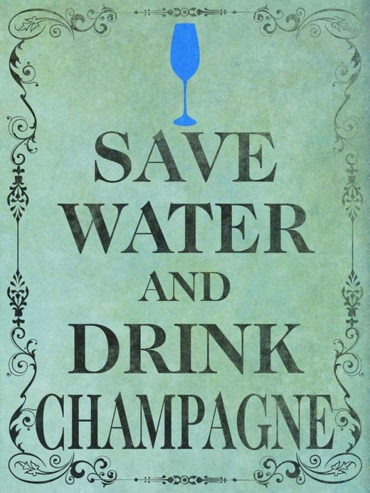 Save and Drink I White Modern Wood Framed Art Print with Double Matting by SD Graphics Studio