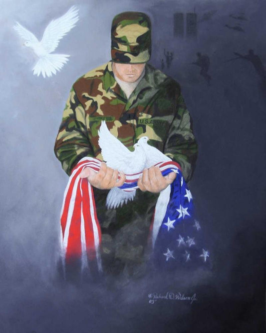 A Prayer for Peace White Modern Wood Framed Art Print with Double Matting by Wilson, Richard