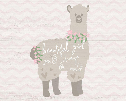 Floral Llama White Modern Wood Framed Art Print with Double Matting by Carpentieri, Natalie