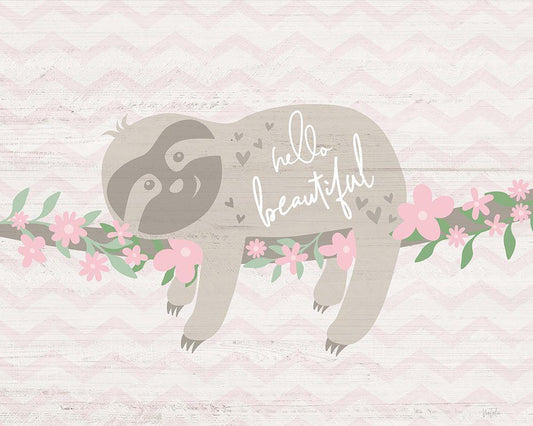 Floral Sloth White Modern Wood Framed Art Print with Double Matting by Carpentieri, Natalie