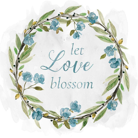 Love Blossom Wreath White Modern Wood Framed Art Print with Double Matting by Robinson, Carol