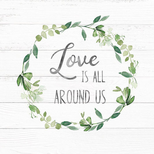Love Is All Around Greenery White Modern Wood Framed Art Print with Double Matting by Robinson, Carol
