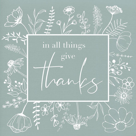 Give Thanks Floral Sketch White Modern Wood Framed Art Print with Double Matting by Santiago, Daniela