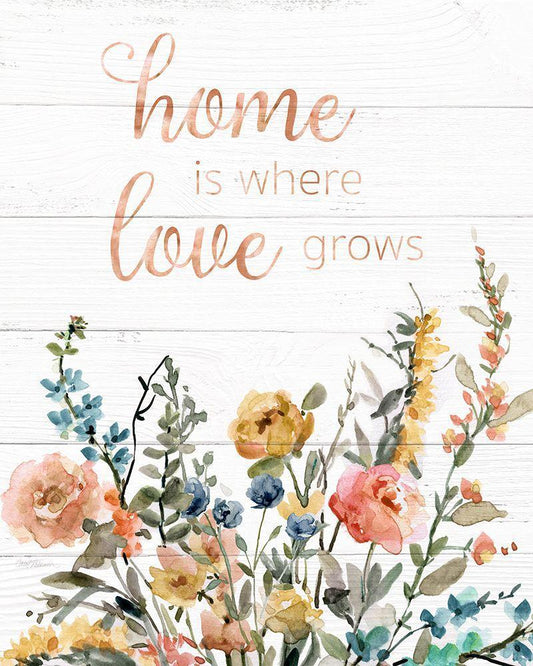 Home is Where Love Grows White Modern Wood Framed Art Print with Double Matting by Robinson, Carol