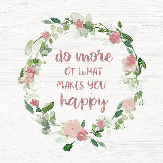 Blush Floral Happy Wreath White Modern Wood Framed Art Print with Double Matting by Robinson, Carol