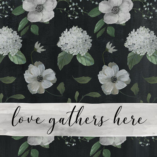 Love Gathers White Modern Wood Framed Art Print with Double Matting by Nan