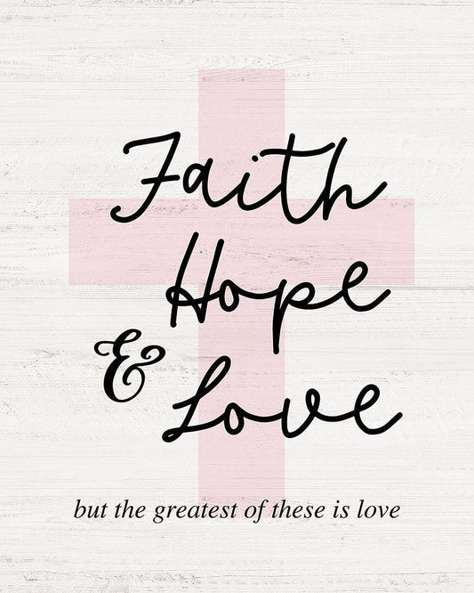 Faith-Hope and Love Cross White Modern Wood Framed Art Print with Double Matting by Carpentieri, Natalie