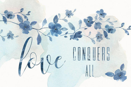 Love Conquers White Modern Wood Framed Art Print with Double Matting by Nan