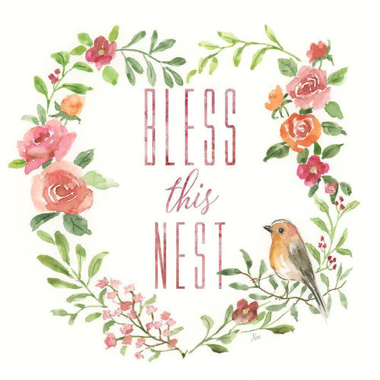 Bless This Nest White Modern Wood Framed Art Print with Double Matting by Nan