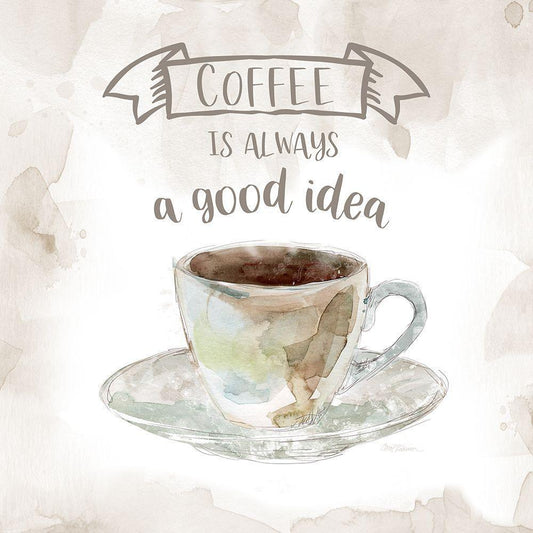 Coffee is Always a Good Idea White Modern Wood Framed Art Print with Double Matting by Robinson, Carol