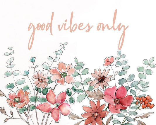 Floral Good Vibes White Modern Wood Framed Art Print with Double Matting by Nan