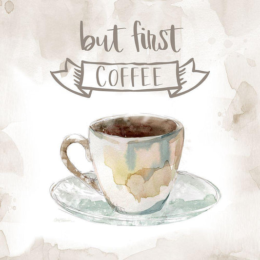 But First Coffee White Modern Wood Framed Art Print with Double Matting by Robinson, Carol