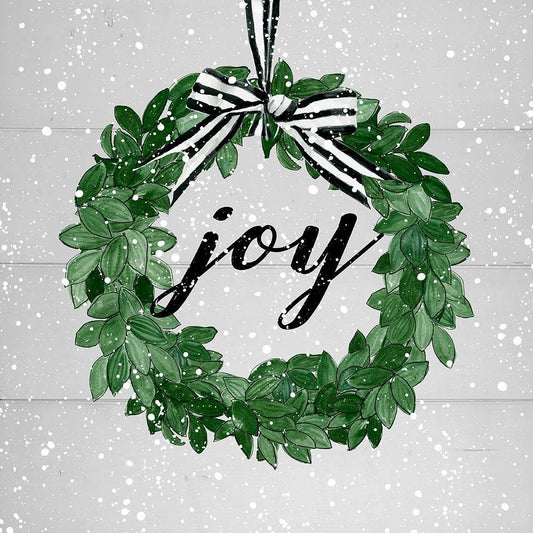 Joy Wreath White Modern Wood Framed Art Print with Double Matting by Robinson, Carol