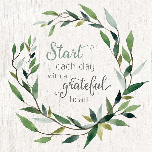 Grateful Heart Greenery White Modern Wood Framed Art Print with Double Matting by Robinson, Carol