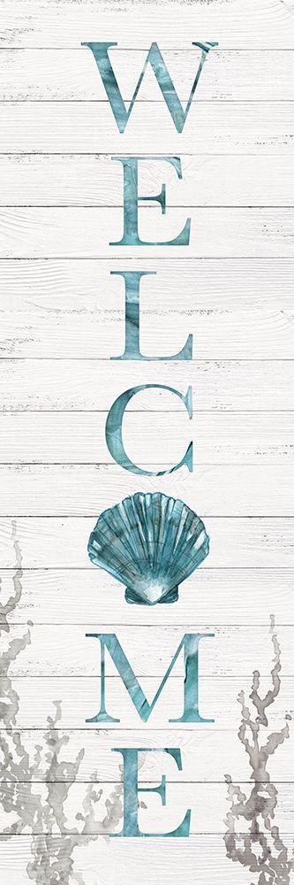 Welcome Shell White Modern Wood Framed Art Print with Double Matting by Robinson, Carol