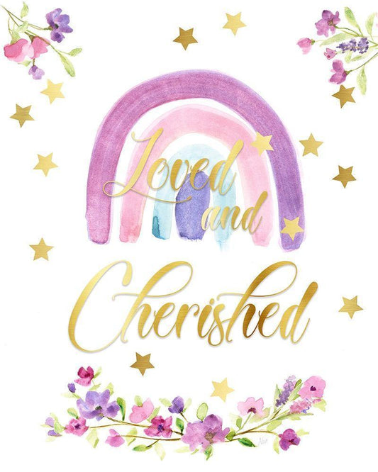 Love and Cherished White Modern Wood Framed Art Print with Double Matting by Nan