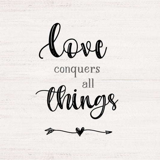 Love Conquers White Modern Wood Framed Art Print with Double Matting by Carpentieri, Natalie
