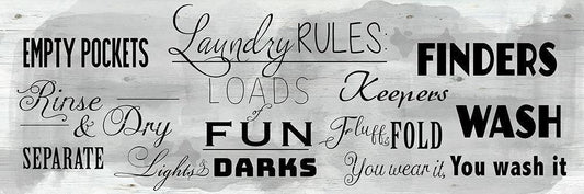 Laundry Rules White Modern Wood Framed Art Print with Double Matting by Santiago, Daniela