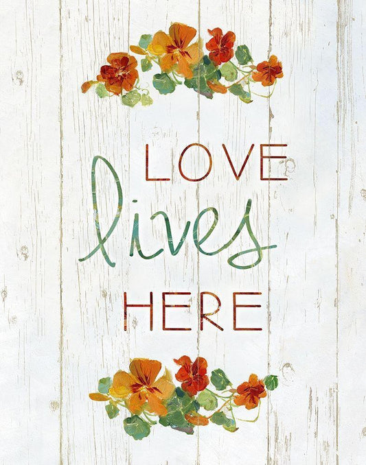 Love Lives Here White Modern Wood Framed Art Print with Double Matting by Swatland, Sally