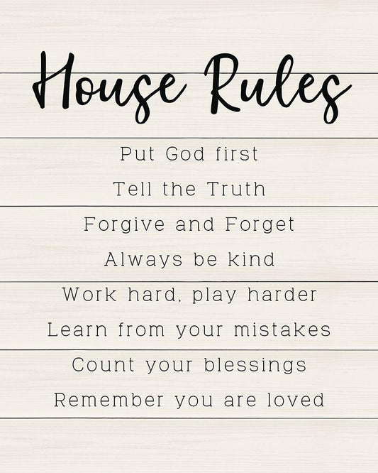 House Rules White Modern Wood Framed Art Print with Double Matting by CAD Designs