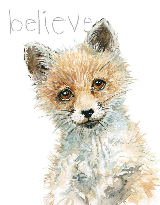 Forest Fur Baby Fox White Modern Wood Framed Art Print with Double Matting by Robinson, Carol