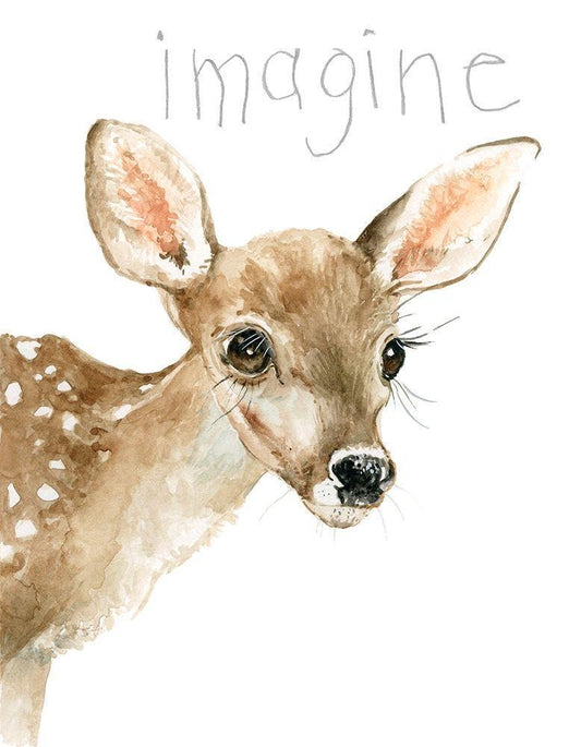 Forest Fur Baby Deer White Modern Wood Framed Art Print with Double Matting by Robinson, Carol