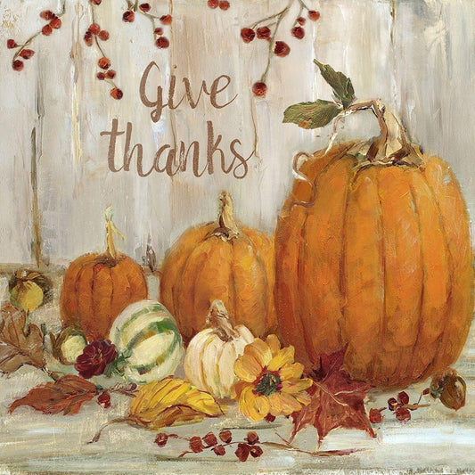 Pumpkin Patch Give Thanks White Modern Wood Framed Art Print with Double Matting by Swatland, Sally