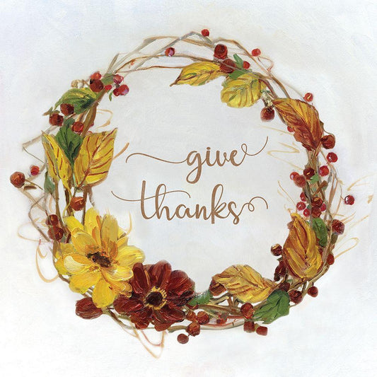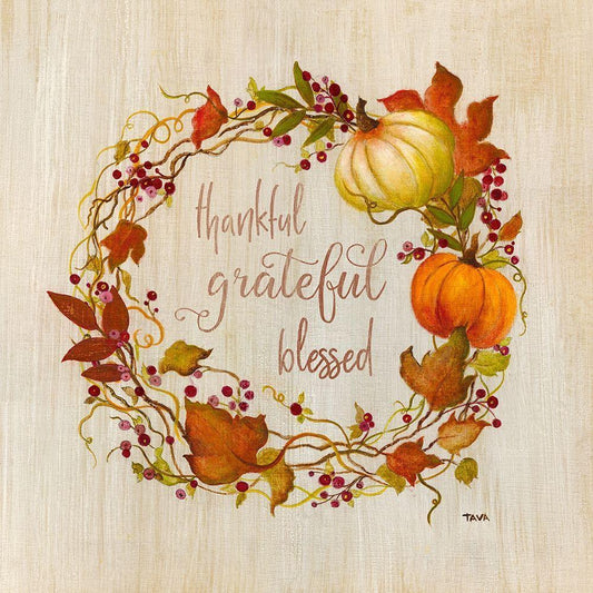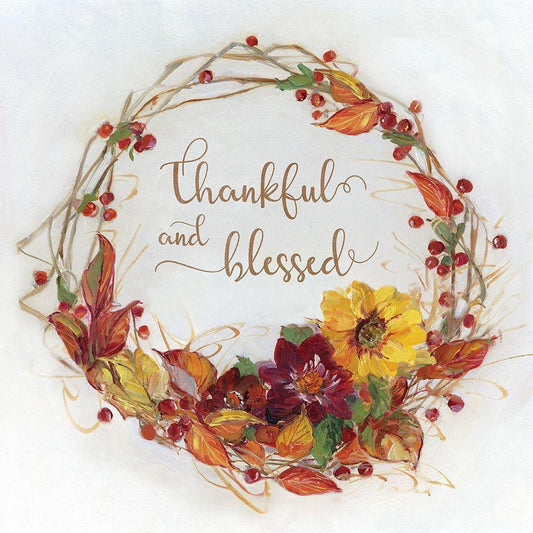 Thankful and Blessed Harvest Wreath White Modern Wood Framed Art Print with Double Matting by Swatland, Sally