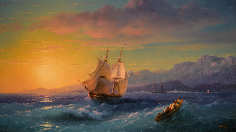 Columbus Sailing From Palos 20x24 Black Modern Wood Framed Art Print Poster by Aivazovsky, Ivan