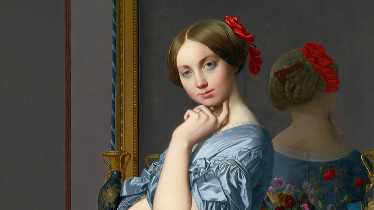 Profile of a Face in the style of Raphael Black Ornate Wood Framed Art Print with Double Matting by Ingres, Jean Auguste Dominique
