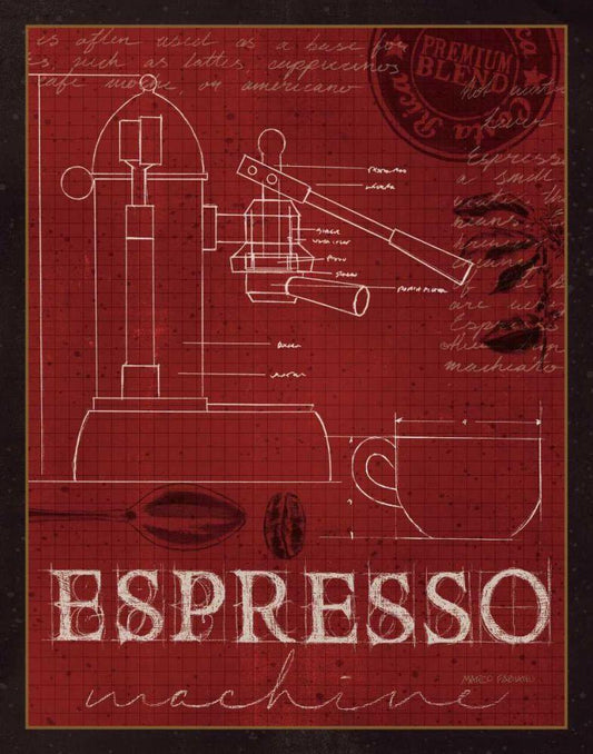 Coffee Blueprint I v2 Black Ornate Wood Framed Art Print with Double Matting by Fabiano, Marco