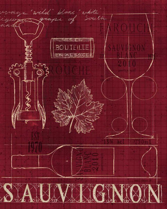 Wine Blueprint II v2 Black Ornate Wood Framed Art Print with Double Matting by Fabiano, Marco