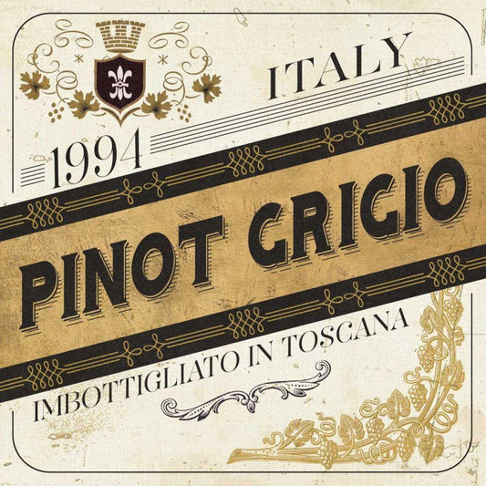 Wine Labels I Black Ornate Wood Framed Art Print with Double Matting by Pela Studio