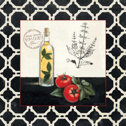 Basil and Tomatoes Black Ornate Wood Framed Art Print with Double Matting by Fabiano, Marco