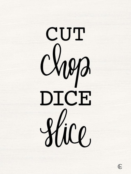 Cut Chop Dice Slice White Modern Wood Framed Art Print with Double Matting by Fearfully Made Creations