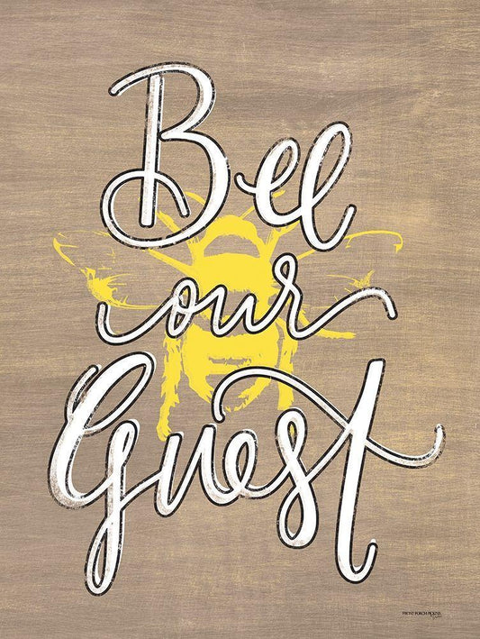 Bee Our Guest White Modern Wood Framed Art Print with Double Matting by Fearfully Made Creations