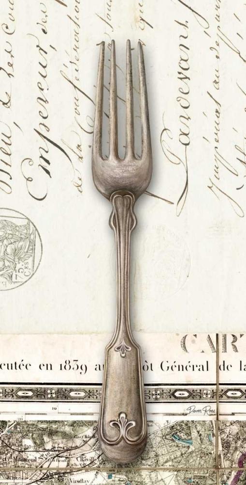 French Cuisine Fork White Modern Wood Framed Art Print with Double Matting by Ross, Devon