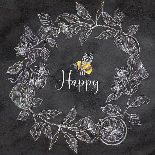 Bee Sentiment Wreath I-Happy White Modern Wood Framed Art Print with Double Matting by Coulter, Cynthia