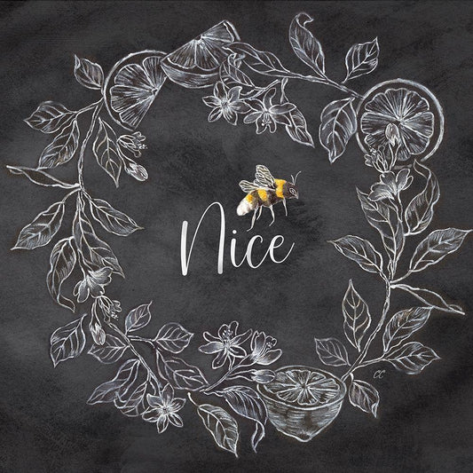 Bee Sentiment Wreath III-Nice White Modern Wood Framed Art Print with Double Matting by Coulter, Cynthia