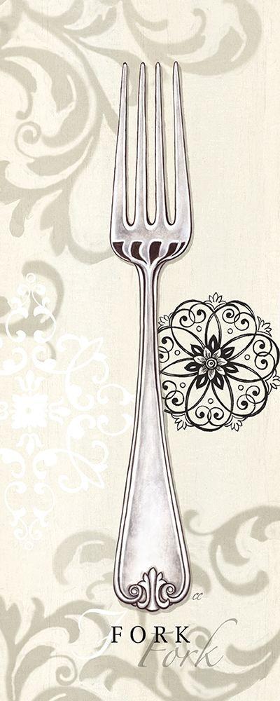 Fork White Modern Wood Framed Art Print with Double Matting by Coulter, Cynthia