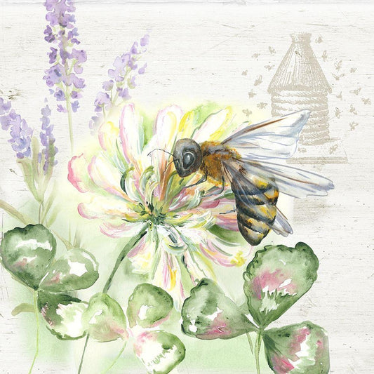 Honey Bee and Clover Wreath II White Modern Wood Framed Art Print with Double Matting by Tre Sorelle Studios
