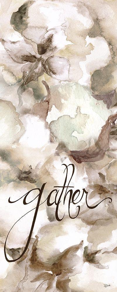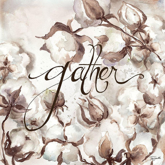 Cotton Boll Panel Grey Sentiment II (Gather) White Modern Wood Framed Art Print with Double Matting by Tre Sorelle Studios