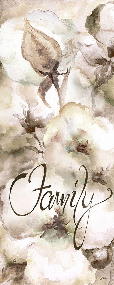 Cotton Boll Panel Grey Sentiment I (Family) White Modern Wood Framed Art Print with Double Matting by Tre Sorelle Studios