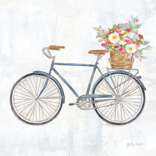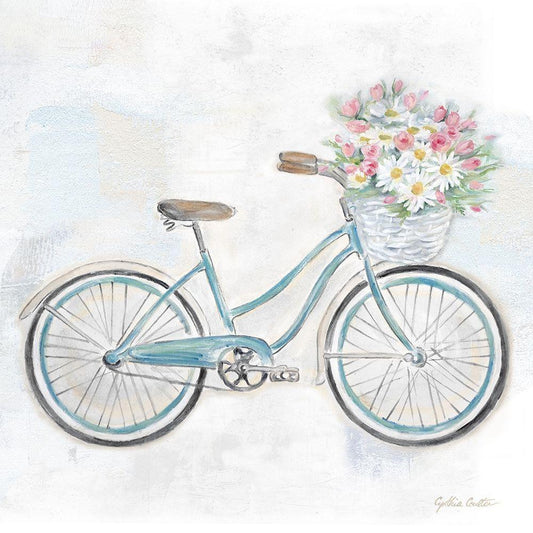 Vintage Bike w/flower basket I White Modern Wood Framed Art Print with Double Matting by Coulter, Cynthia