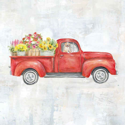 Vintage Red Truck White Modern Wood Framed Art Print with Double Matting by Coulter, Cynthia