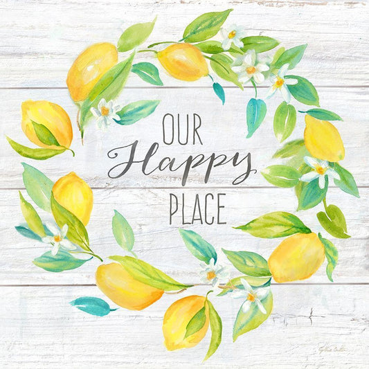 Our Happy Place Lemon Wreath White Modern Wood Framed Art Print with Double Matting by Coulter, Cynthia