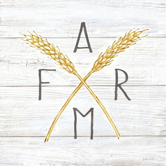 Farmhouse Stamp Wheat White Modern Wood Framed Art Print with Double Matting by Coulter, Cynthia
