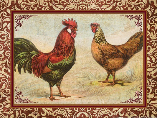 Rooster Trio White Modern Wood Framed Art Print with Double Matting by Yellow Cafe
