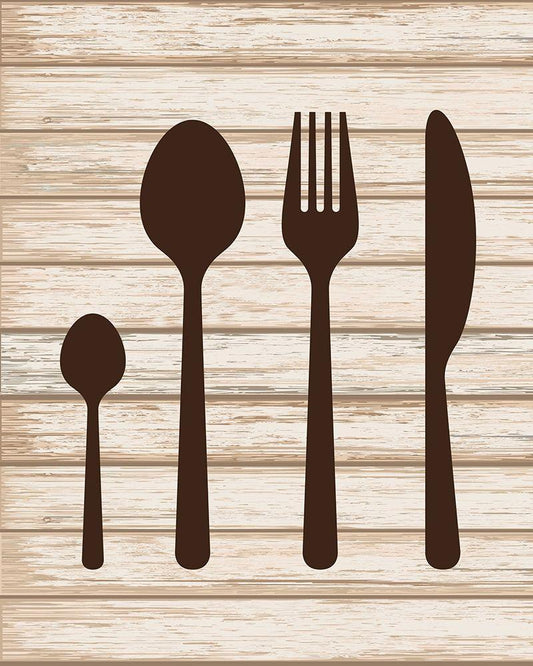 Dining Utensils White Modern Wood Framed Art Print with Double Matting by Robinson, Tamara
